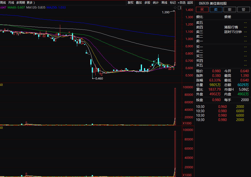 港股美佳音控股一度飙升超130% 盘中紧急停牌