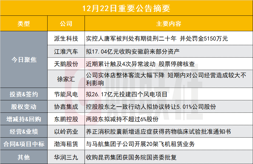 【派生科技:实控人唐军被判处有期徒刑二十年 并处罚金5150万元】派生科技公告,公司于昨日获悉东莞市中级人民法院对派生集团及其主要负责人唐军、张林等人非法集资案一审公开宣判。有媒体已发布了关于公司实际控制人唐军涉及案件的判决相关文章:派生集团因集资诈骗罪、非法吸收公众存款罪、操纵证券市场罪数罪并罚被判处罚金16.1亿元;派生集团原董事长唐军被判处有期徒刑二十年,并处罚金5150万元;派生集团原总经理张林被判处有期徒刑二十年,并处罚金4100万元。其他44人因参与非法集资、操纵证券市场、虚开增值税专用发票等犯罪,被判处有期徒刑一年六个月至十五年,并处罚金。