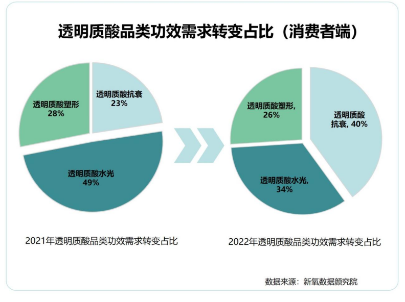 1功效需求层面,从透明质酸补水向抗衰比重倾斜;