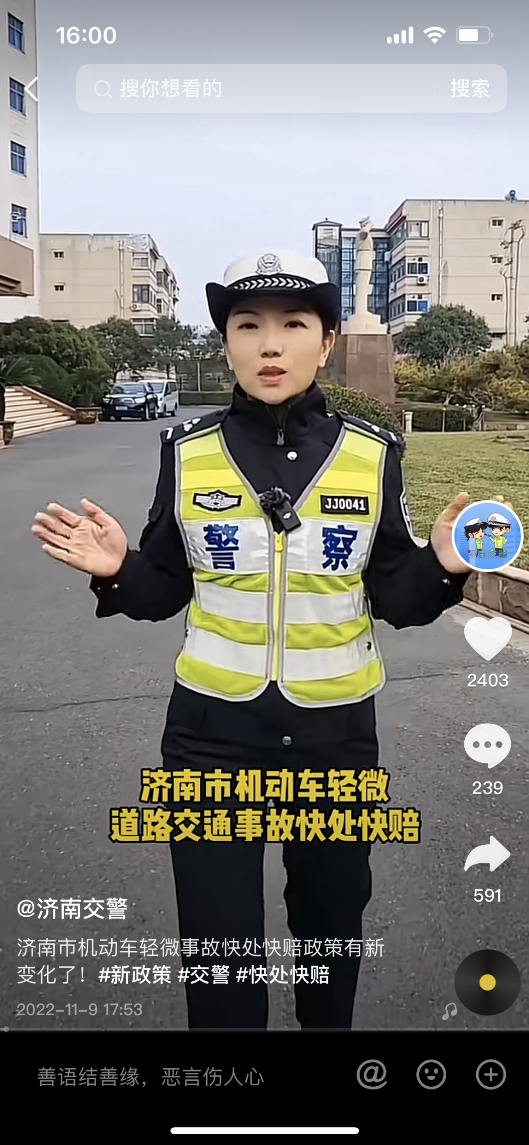 一是,集中开展主题宣传。制作了一批宣传手册、宣传卡片及常见的符合交通事故快处快赔的图例,充分应用传统媒体平台和新媒体矩阵,通过济南交警微信公众号、头条号、抖音、报纸等媒体并制作关于快处办法内容及解读的小视频向全社会进行大力宣传,形成强大声势,提升了交通参与者的知晓度。