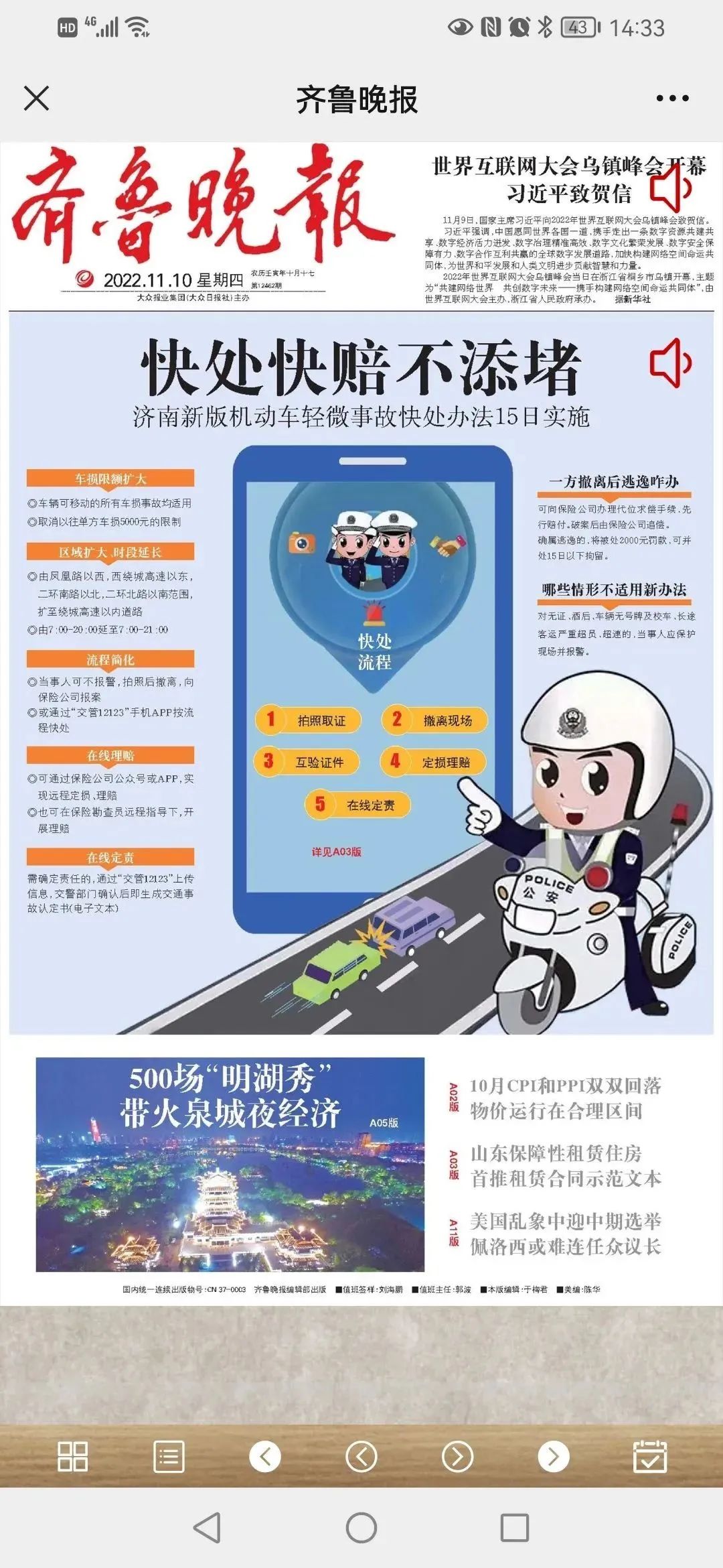 快处快赔办法自实施以来,济南交警智能语音回访系统回访警情9433起,满意率达97.83%。
