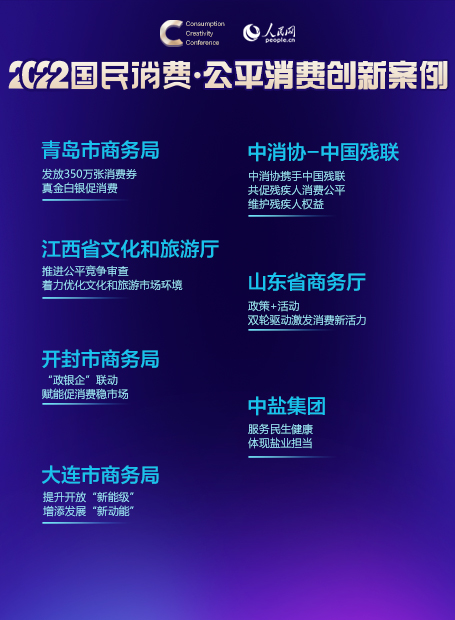 人民网北京12月23日电 为响应扩大内需战略,推动消费持续恢复,助力新兴消费,推动绿色消费,拓展消费新场景,进一步改善消费环境、促进消费公平,人民网财经研究院(国民消费研究中心)于2022年3月正式启动“2022国民消费创新案例征集活动”。活动期间,共征集到来自各地党委政府、行业组织以及企业机构的案例225个,经过初核、展示、专家评议等环节,最终推荐产生2022国民消费创新案例90个。