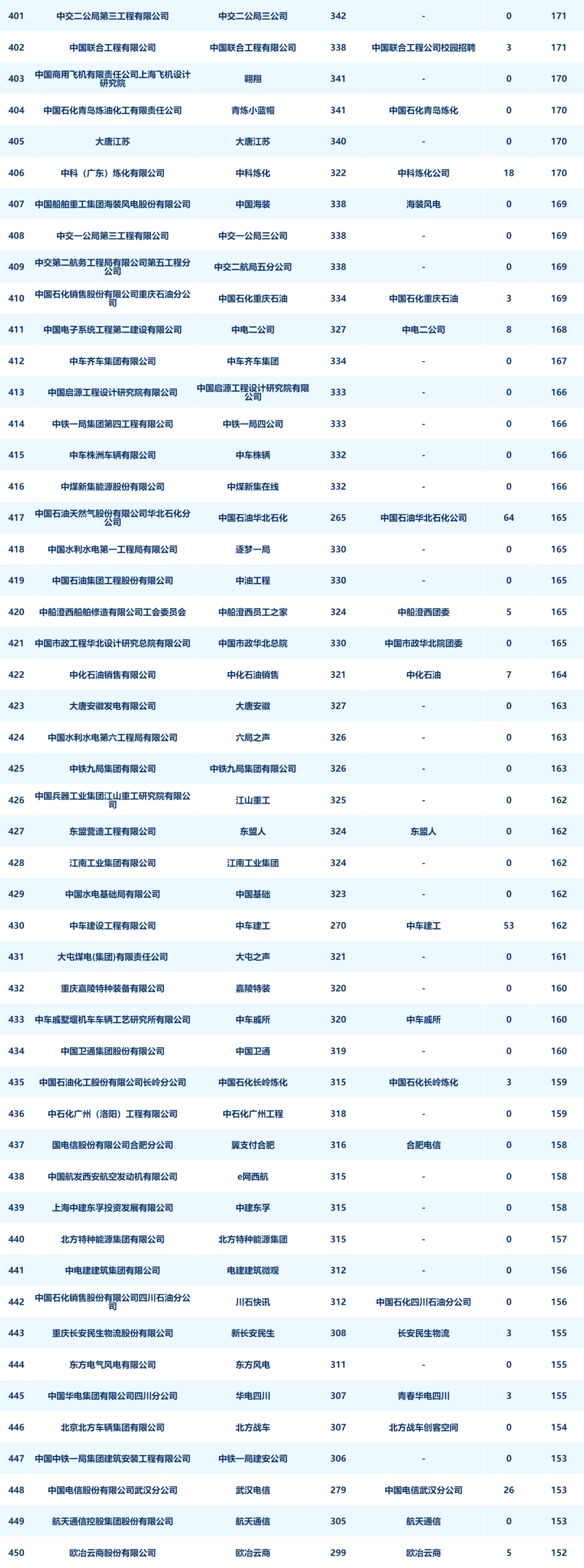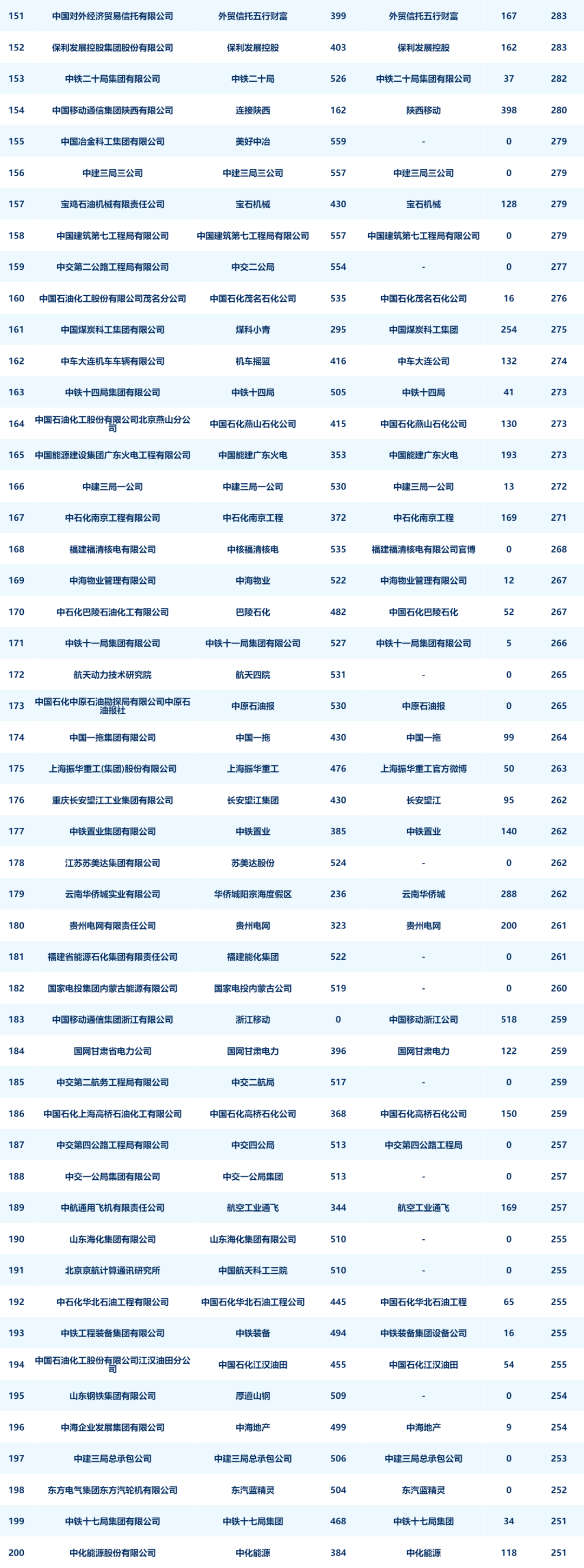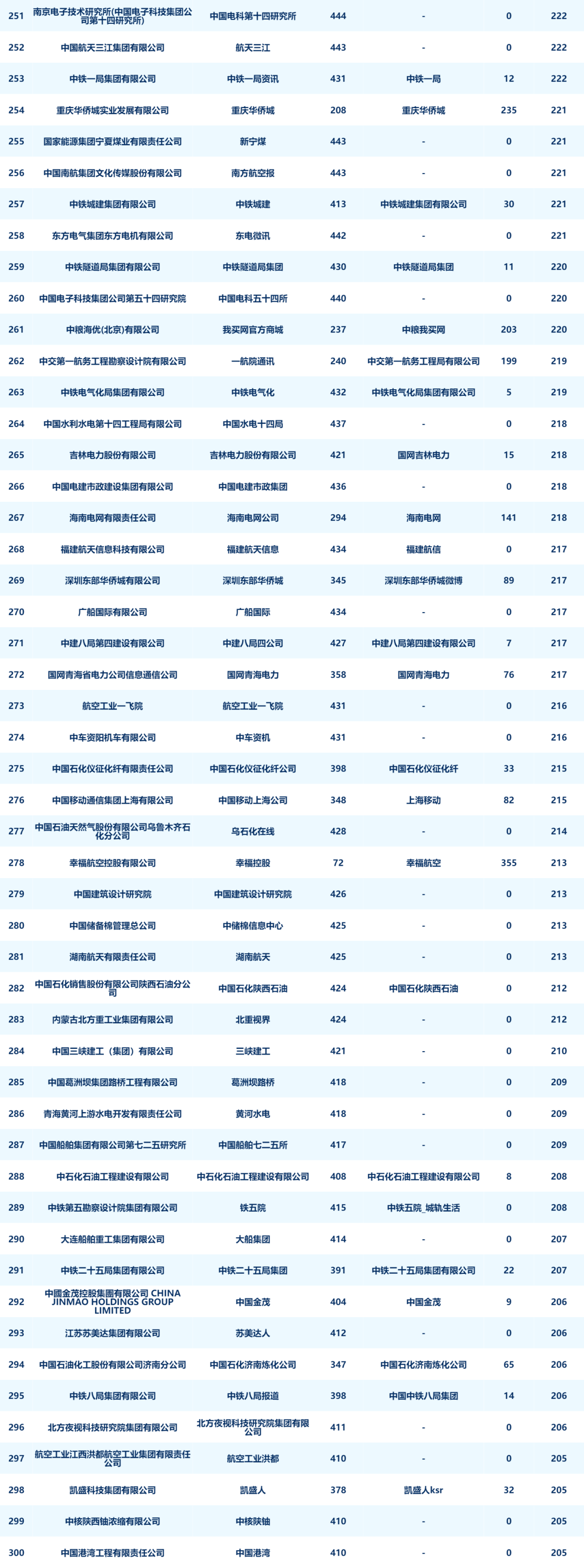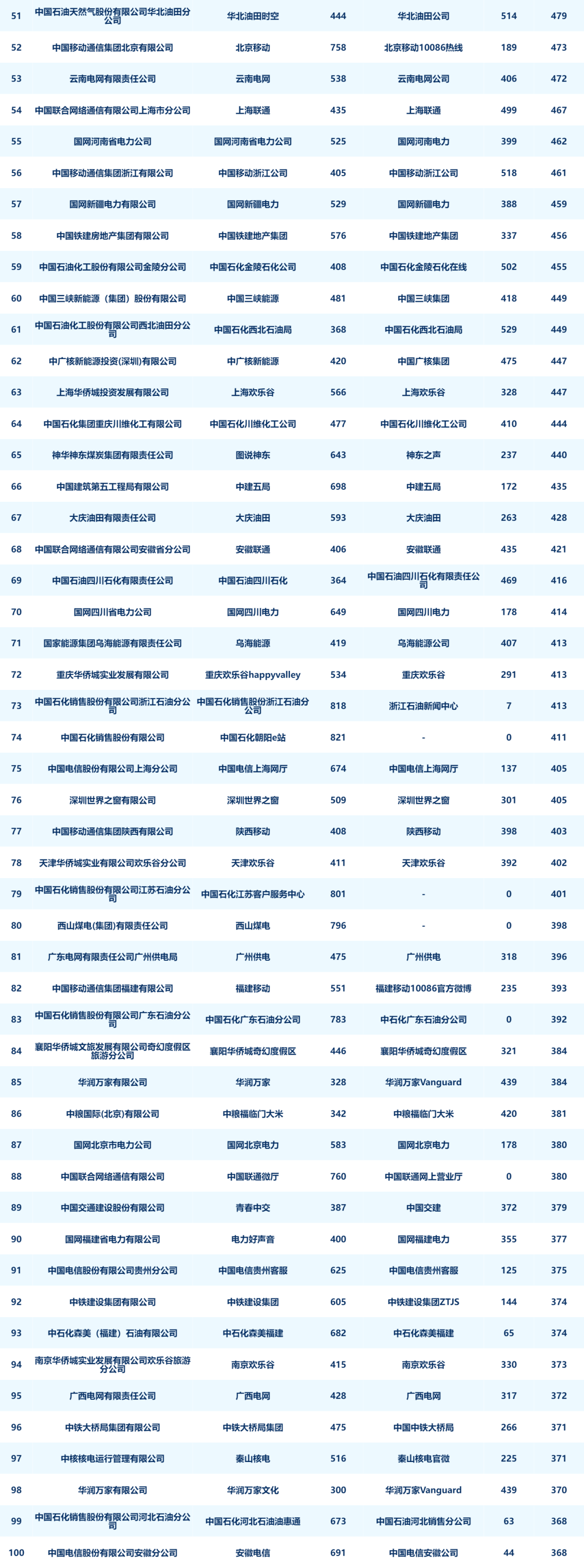 11月进入榜单前二十名的企业分别是:国网浙江省电力有限公司、国网江苏省电力有限公司、国网安徽省电力有限公司、国网湖北省电力有限公司、中国电信股份有限公司增值业务运营中心、国网山东省电力公司、中国石油天然气股份有限公司润滑油分公司、中国联合网络通信有限公司北京市分公司、《国家电网报》社有限公司、国网河北省电力有限公司、中移在线服务有限公司、招商银行股份有限公司、中国联合网络通信有限公司客户服务部、中国石油天然气股份有限公司浙江销售分公司、中建三局集团有限公司、中国石化胜利石油管理局有限公司、重庆长安汽车股份有限公司、中国葛洲坝集团股份有限公司、中国石油集团渤海钻探工程有限公司、国网陕西省电力公司