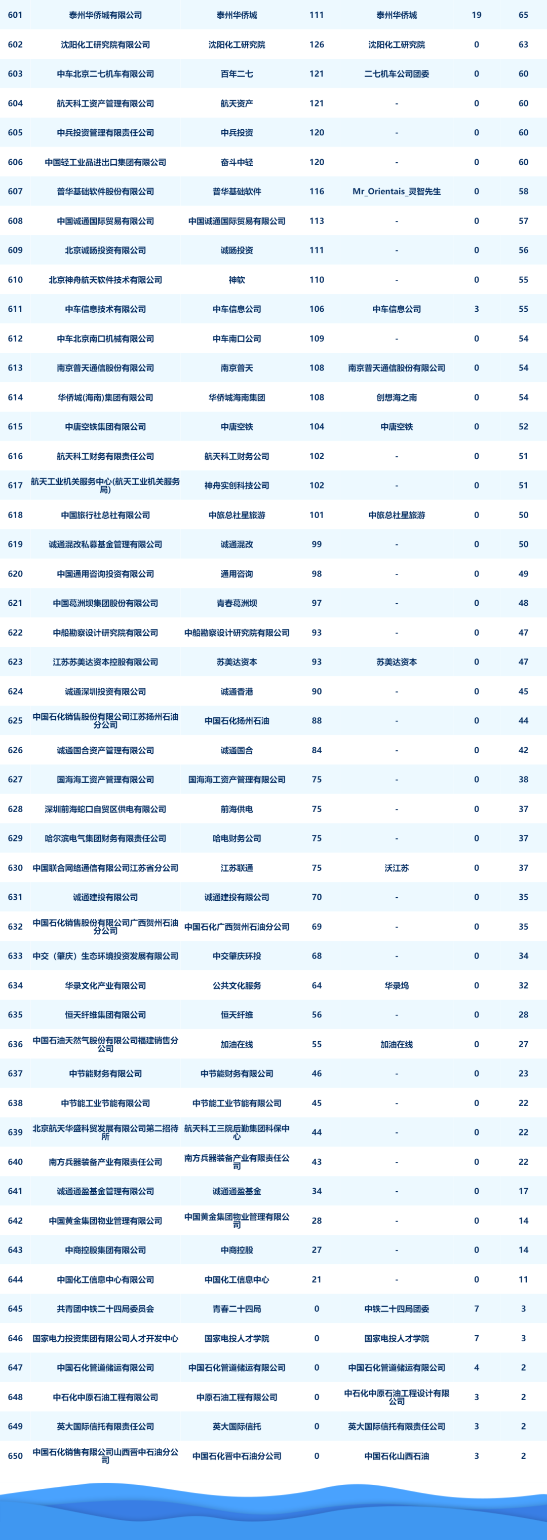 此次统计难免挂一漏万,相信还有一些小新不知道的、做得非常棒的二级账号!这是一份开放式的榜单,欢迎更多的中央企业二级新媒体账号申报加入。请在文章下方留言,把新媒体账号相关信息及所属企业告诉小新,小新会帮您进行添加的~