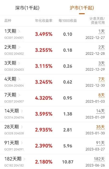 结合2023年元旦节放假安排,本周四(12月29日)就是操作国债逆回购的最佳时点之一。12月29日当天,只需投资1天期逆回购就可以赚到4天的利息,而且资金在1月3日开盘前即可到账,也可用于继续投资。