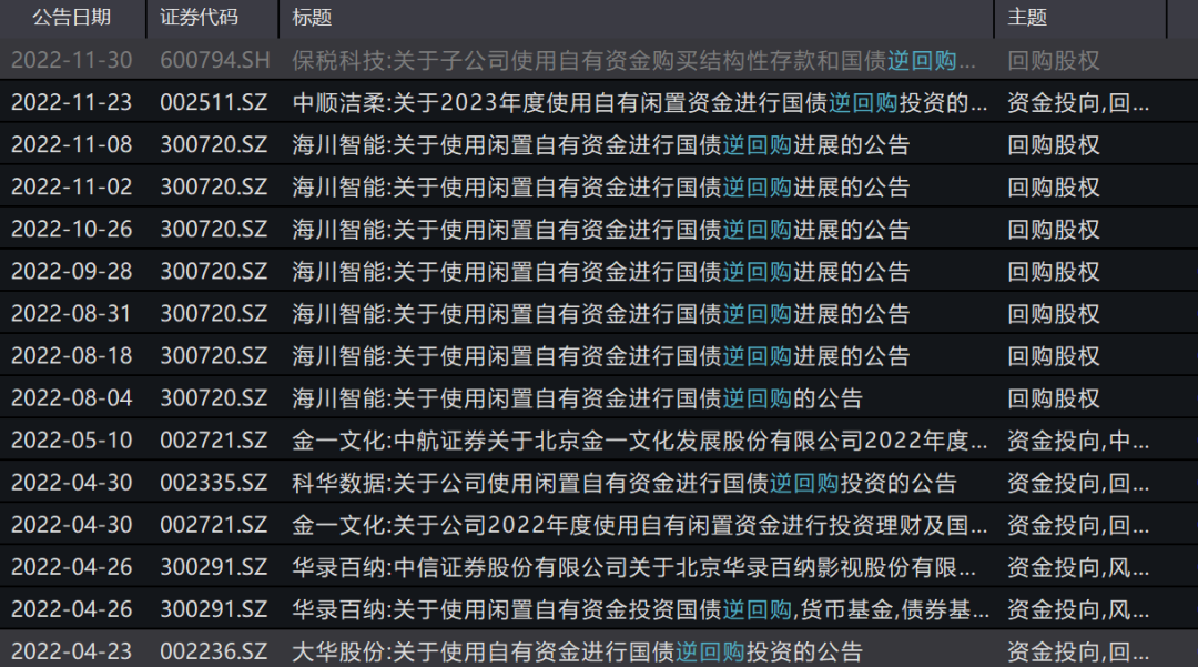 其实不仅仅普通投资者热爱国债逆回购,有的上市公司也热衷于国债逆回购。在有短期闲置资金的情况下,将闲置资金参与国债逆回购,也成为当下不少上市公司盘活账面闲置资金的新玩法。