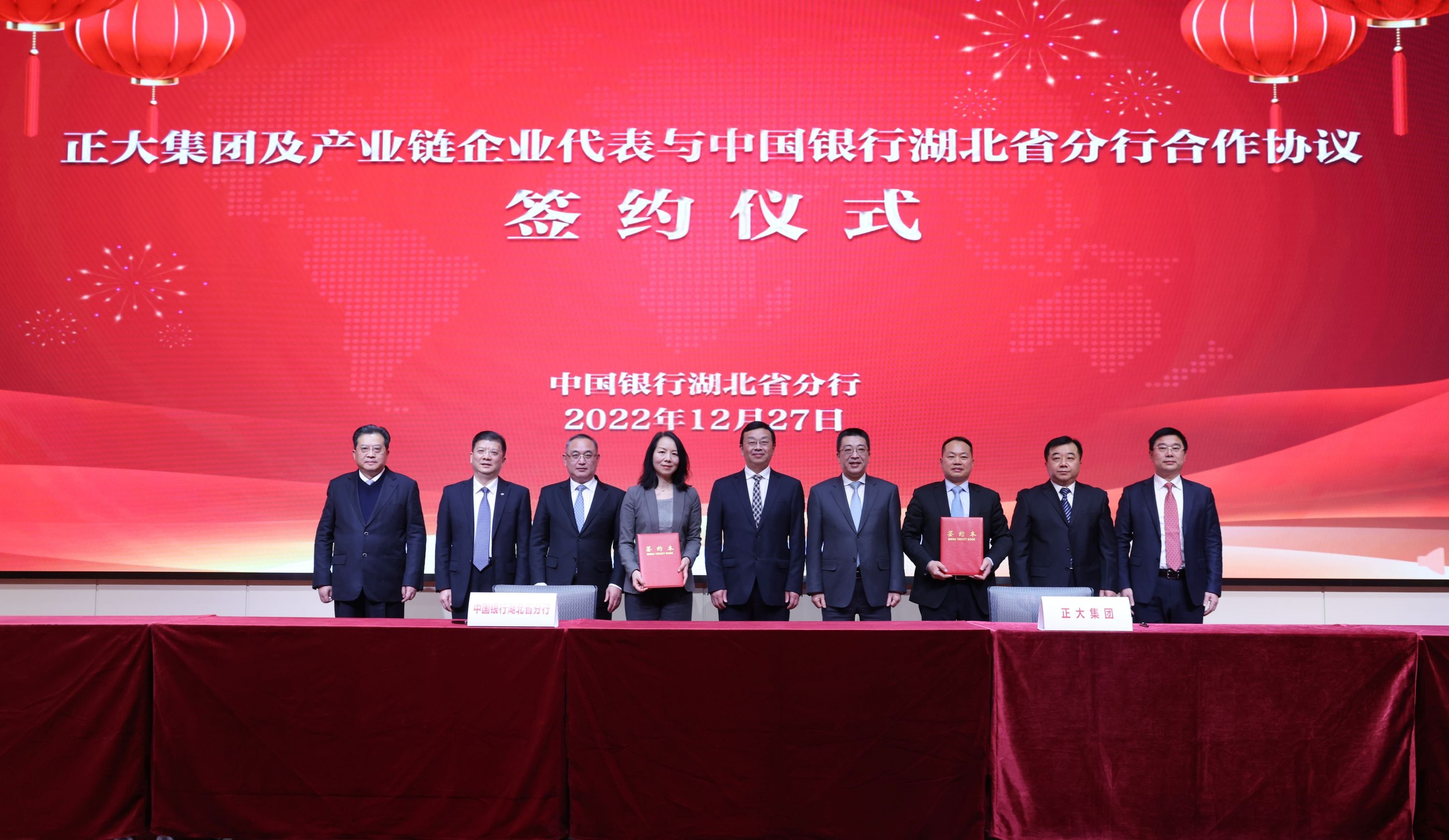 长江日报大武汉客户端12月28日讯(记者陈小敏 通讯员张有为)27日,中国银行湖北省分行与正大集团农牧食品企业中国区举行“中银正大兴农惠农金融服务模式”发布仪式,活动现场,中国银行湖北省分行还与正大集团在武汉、宜昌、襄阳、咸宁、随州、潜江等地产业链企业和个体工商户代表进行了线上签约。