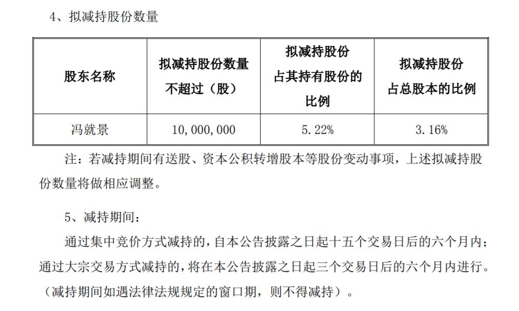 据披露,截止至公告披露日,冯就景持有日丰股份股份数量为191396477股,占公司总股本的60.45%。本次减持原因为个人资金需求,股份来源为公司首次公开发行前已发行的股份及公司上市后资本公积转增股本增加的股份。减持价格根据减持时市场价格确定,不低于公司首次公开发行股票的发行价。