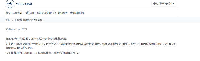 又如VFS Global挪威签证申请中心的信息显示,其北京签证申请中心于2022年12月21日起恢复运营,广州签证申请中心于2022年12月27日起恢复运营,而沈阳签证申请中心于2022年12月28日起恢复运营。