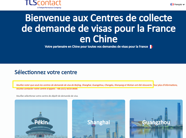 同时,法国的签证受理中心中,北京、上海、广州、成都、沈阳和武汉签证受理中心已恢复运营。