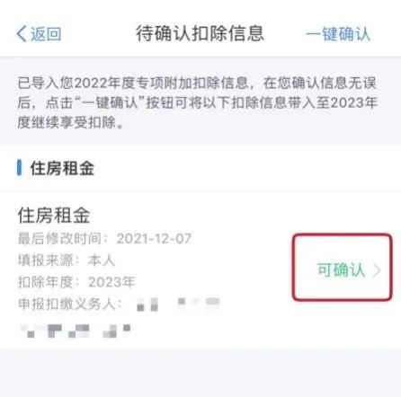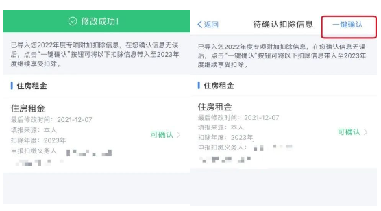 2023年还有其他继续享受的专项附加扣除,则再点击“一键确认”完成信息提交。