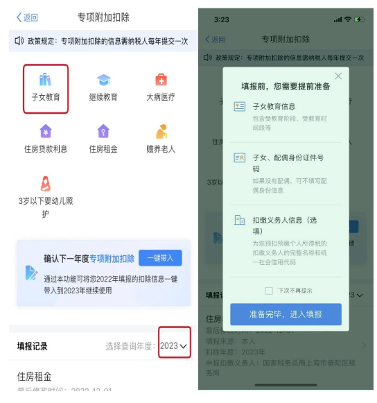 2023年首次享受专项附加扣除