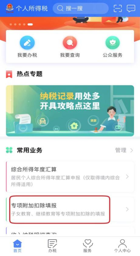 直接选择APP首页的“专项附加扣除填报”,进入填报界面。