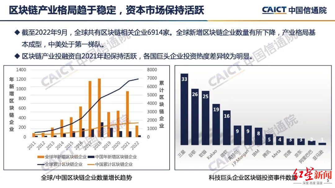 会上发布《区块链白皮书(2022年)》,白皮书显示,中美两国区块链企业数量仍处于全球领先地位,合计占比达52%,数字资产正成为下一个全球必争之地。据统计,我国区块链企业超过了1400家,产业园区超40个。