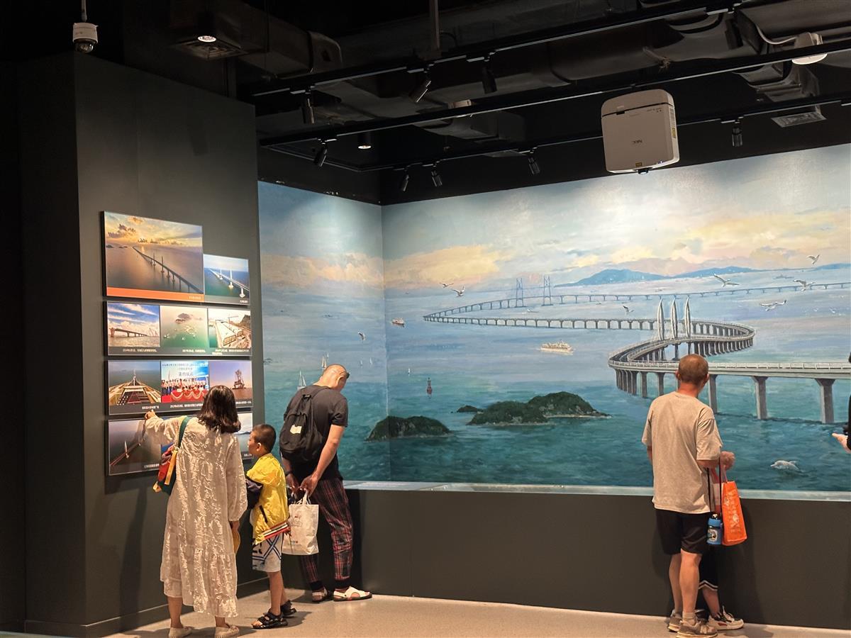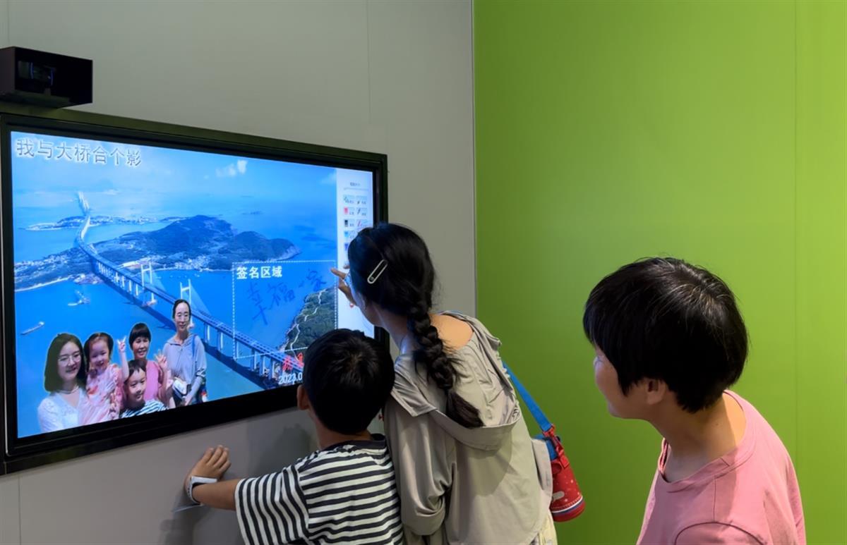 今年8岁半的小男孩陈梦奇和妈妈、奶奶,以及从浙江远道而来的姑姑、表妹一起正在留影区与港珠澳大桥合影。接受极目新闻记者采访时,陈梦奇表示自己非常喜欢逛博物馆,并对自己逛过的博物馆如数家珍。他赞叹桥梁博物馆里展示的桥“都太美了”,印象最深的正是港珠澳大桥,惊叹于它的长度与雄伟壮观。陈梦奇妈妈介绍,此前看到陈梦奇的同学家长分享了桥梁博物馆,这次便慕名而来,“可以让孩子以及大人在游玩中增长知识,很赞!”