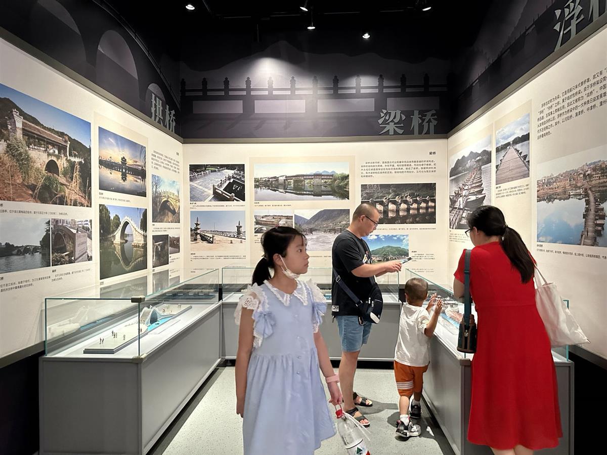 为了满足暑期公众对博物馆的参观需求,近日包括陕西历史博物馆、兰州市博物馆等在内的全国多家博物馆实行“周一不闭馆”措施。记者了解到,坐落于武汉汉阳区的桥梁博物馆周一可预约观展。8月15日,极目新闻记者探馆看到不少市民和游客慕名前来,沉浸式感受桥梁“让天堑变通途”的魅力。