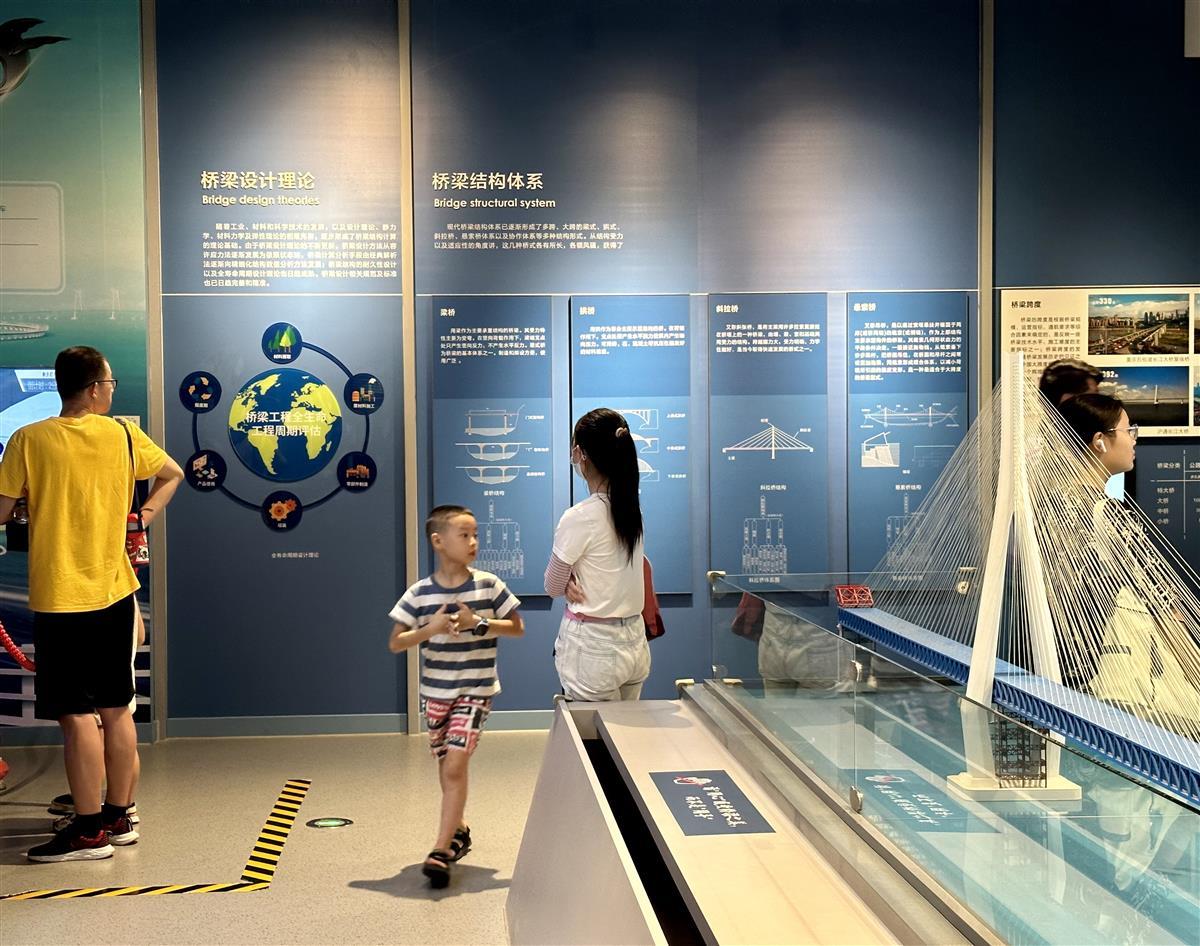 寓教于乐的魅力不止于此。在展厅内,观众用馆方提供的积木自己动手搭建不同样式的古代拱桥;通过VR体验设备在“世界最长的跨海大桥”港珠澳大桥上“驾车”行驶,一路飞驰。在5D影院追溯桥梁的前世今生,感知桥梁建造的惊心动魄与激动人心;在留影区,切换屏幕上不同的桥梁背景图,与心仪桥梁免费合拍,写上专属签名。