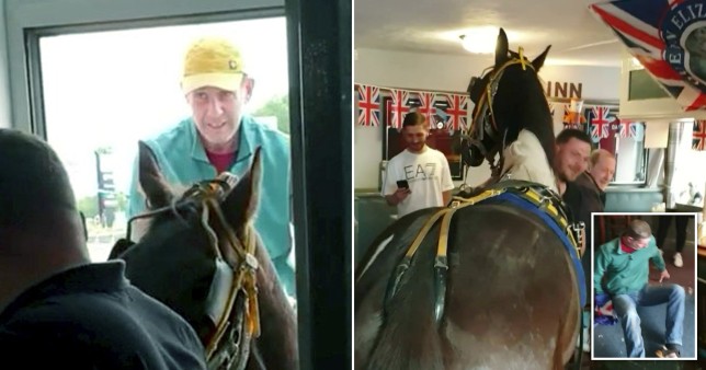 据英国《都市报》6月5日报道,近日,在英国兰开夏郡伯恩利,一名男子试图骑马走进一家酒吧,不幸的是头撞在了木门的横梁上,把他和另个人的酒撞飞了。酒吧里人的确认了下他是否没事,然后哄堂大笑。