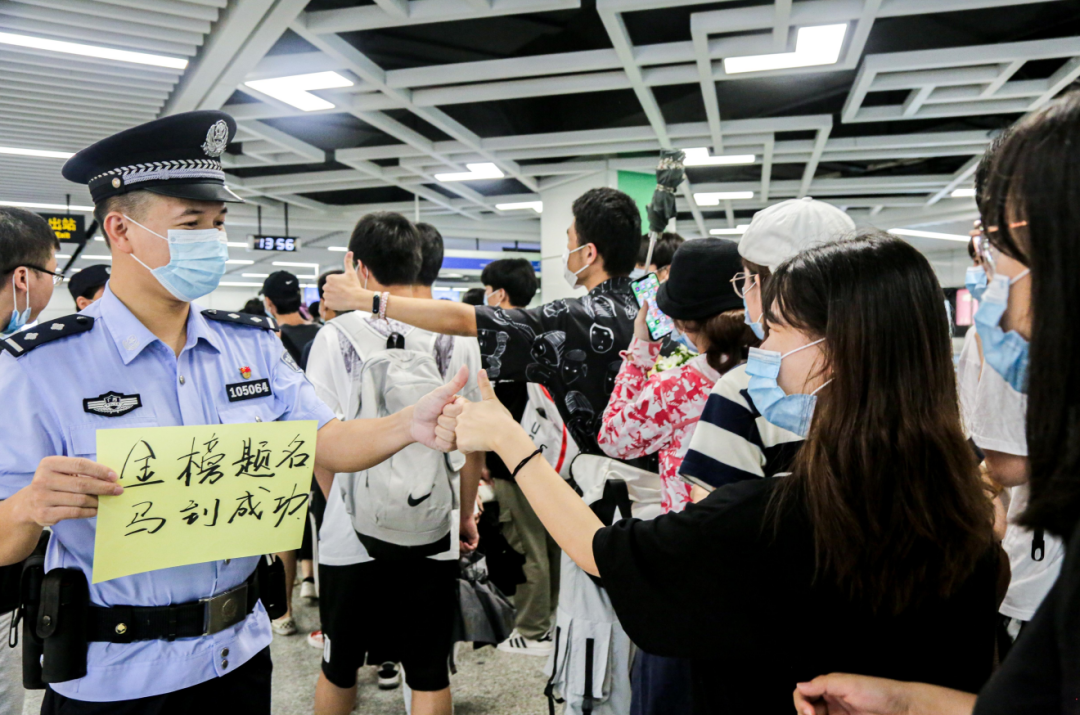 “要进考场了别紧张”“祝你们金榜题名,马到成功”“没事了,证件马上就能办好,你不会迟到”还有什么比警察蜀黍的话语更让人放心的呢?