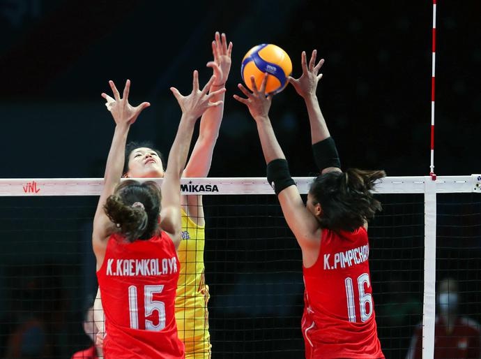 泰国队的接应平皮查亚拿下28分,是球队取胜的最大功臣。中国队李盈莹和龚翔宇分别得到28分和20分。