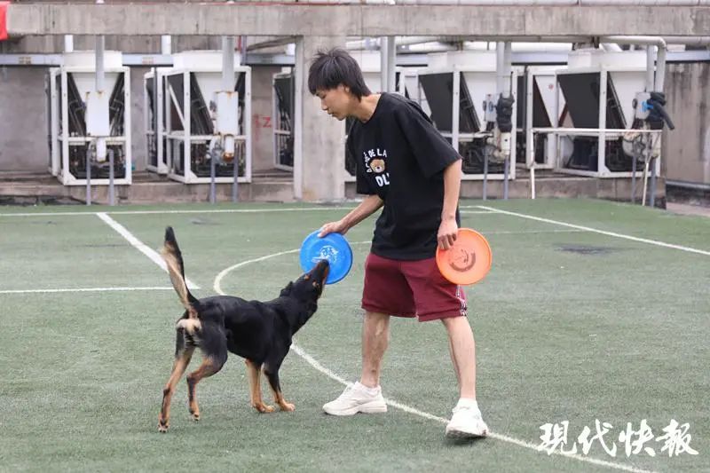 这已经是宠物驯导师“大腿”入行的第9个年头。90后的他从小就非常喜欢狗狗,但父母不准他饲养,直到2013年他才“先斩后奏”,抱回了一只金毛幼犬,“当时父母看到这只小金毛,第一反应就是让我退回去。后来还是我软磨硬泡,答应父母以最快的速度教会狗狗定点上厕所,他们才勉强同意留了下来。”