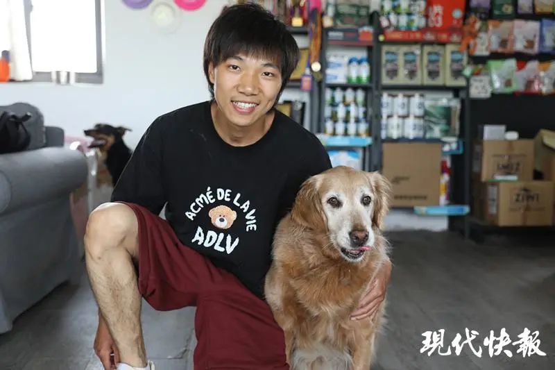 在主人接受采访时,一只毛色已经发白的大金毛犬从屋内慢慢悠悠地晃了出来,安静地卧在“大腿”身边晒太阳。9年前,这只调皮的金毛幼犬被“大腿”一眼相中,让他顶着家人的压力带回了家。这些年来,它始终陪伴在主人身边,成为了主人开启自己事业最初的契机。