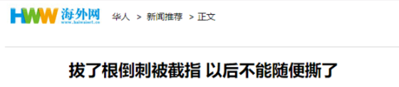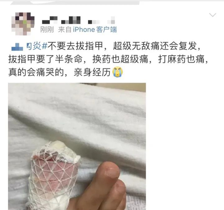 演员邓萃雯就曾因拔倒刺而手指发炎做手术。她在微博中提醒大家:如果“不幸”指甲有倒刺,千万不要随意拔除甚至用牙咬。
