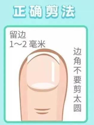 剪指甲的正确姿势是:先用温水洗洗,使指(趾)甲变软,然后平着剪,指甲的两侧适当留长 1 到 2 毫米,最后把边缘稍微打磨光滑。