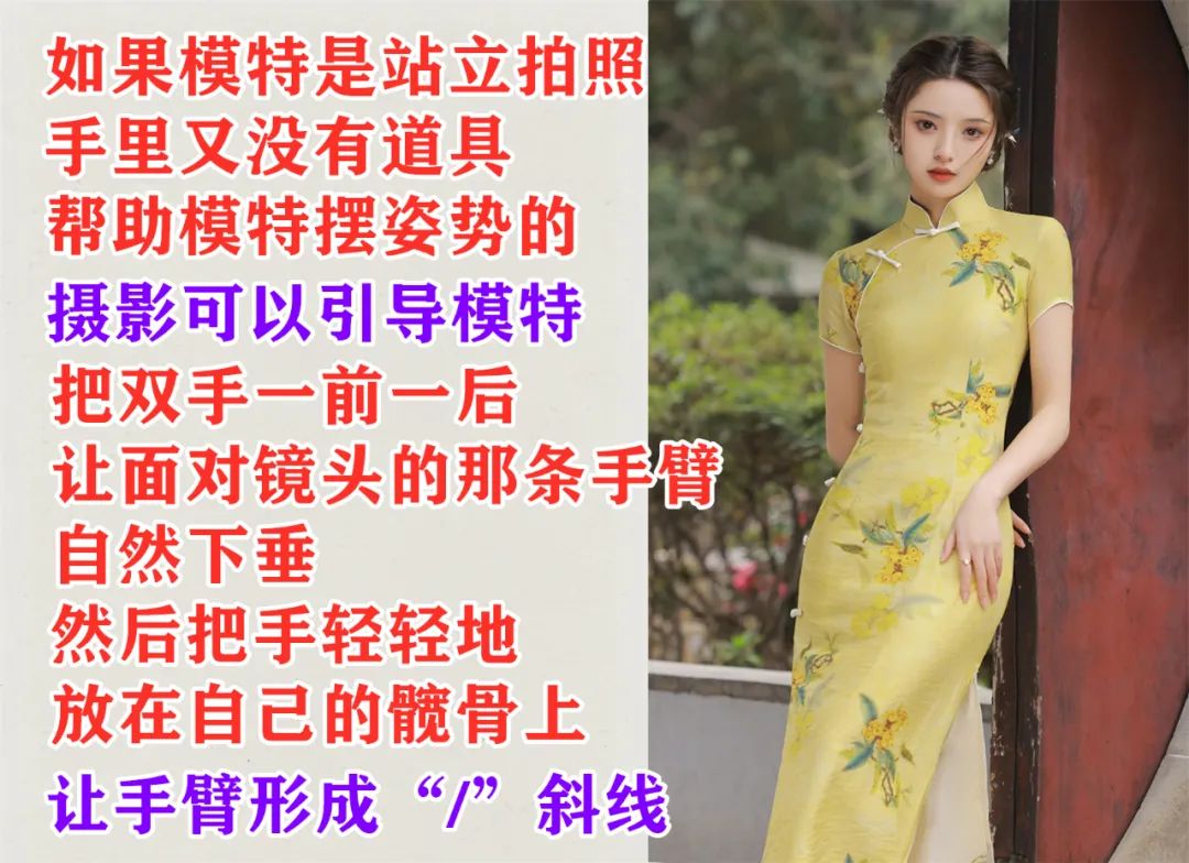 可以让模特的双手“搭”在身前。