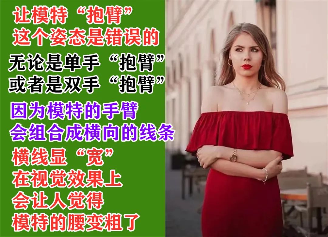 “抱臂”这个姿态会让模特的手臂,