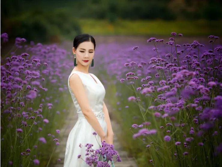 比如长杆的花束,放在模特的腰部,形成“斜线”,