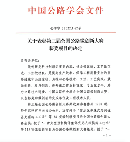 近日,中国公路学会公布了第三届全国公路微创新大赛评审结果,浙江交通集团下属浙江交工路建甘肃康略2合同申报的混凝土冬季施工温湿度智能检测系统从1228项参赛作品中脱颖而出,摘得大赛铜奖。