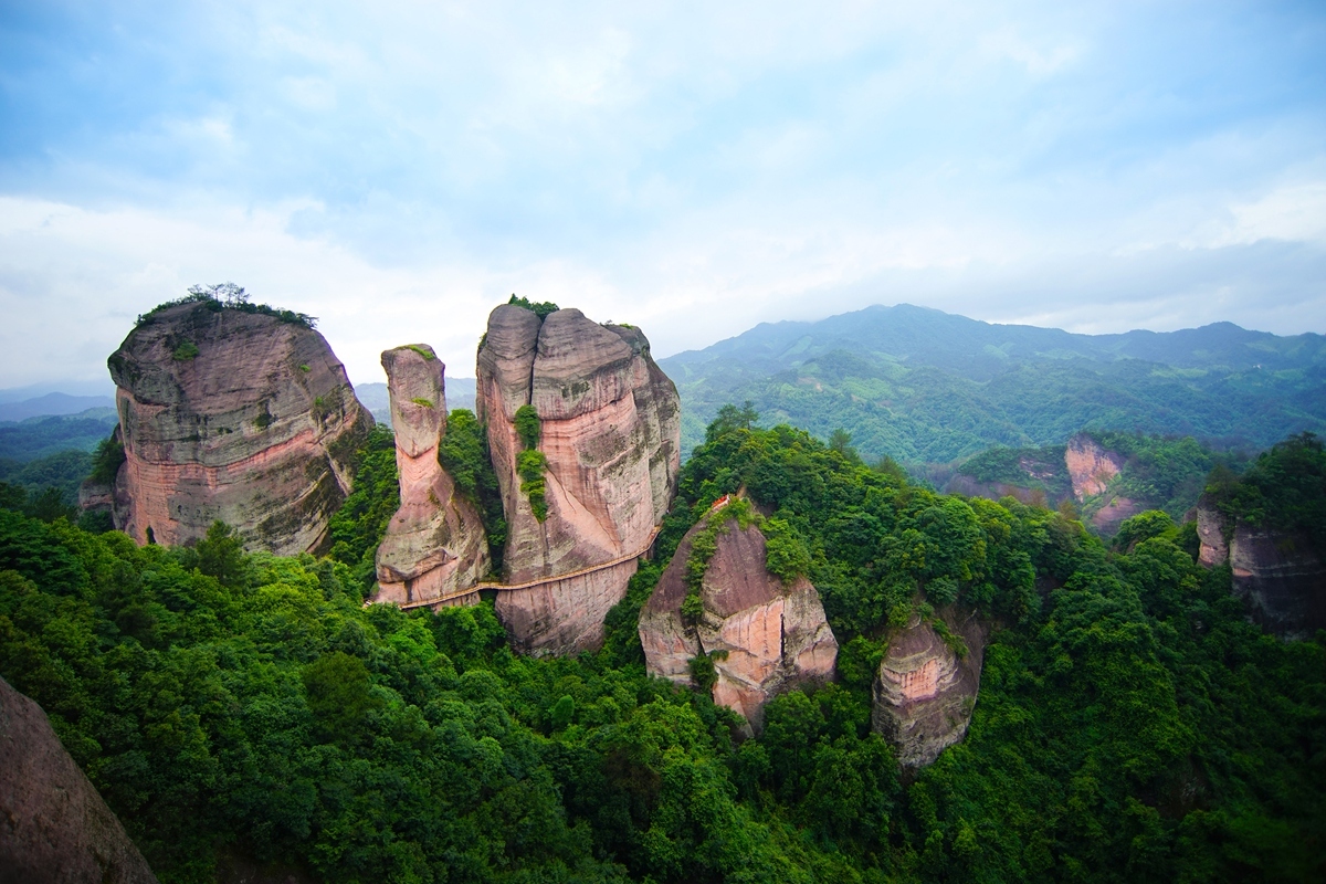 桂林丹霞景区,世界自然遗产,国家森林公园,国家地质公园,国家4A级景区,由八角寨景区和古木冲景区两大核心区域组成。