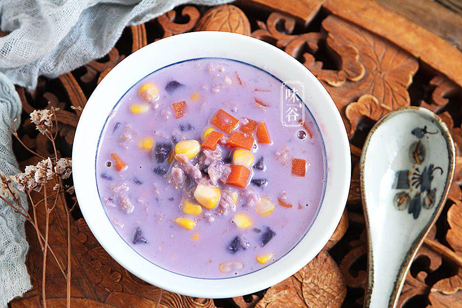 【食材】:紫薯 适量、玉米 适量、胡萝卜 适量、燕麦 适量、牛奶 适量