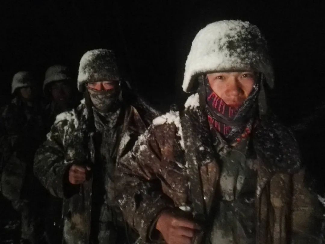 高原驻训,最难忘的就是在雪夜里站哨了,印象最深的是去年六月的一个深夜。尽管已经里三层外三层裹了不少衣服,但掀开帐篷帘子时,寒气瞬间让我清醒,整个人也精神了不少。同行的三人里,就有这个跟我同班刚满十八岁的列兵袁硕。那是他第一次站夜哨,一路上他兴奋地问了我很多问题,天很黑,我看不清他的脸,只能听见他因为不停说话而吃力的喘气声。交接哨位时,他略显笨拙地接过上一班哨兵的弹药,用嘴叼着两只手套,仔细拧开每一个特种弹药,认真清点着,雪无声地落在他棉帽上,落在他粗糙得已经有些黑黄的手上,转瞬就化开了。他作为副哨跟我站在同一侧,我原本还担心他第一次站哨难免激动,又要问个不停,可让我没想到的是,当他站上哨位时,他却如同变了个人一般,屹立在那里,两眼紧盯着一片漆黑的远方,任由雪落在他羊皮大衣的毛领里,哈出的冷气瞬间变成冰霜,凝结在防寒面罩上……