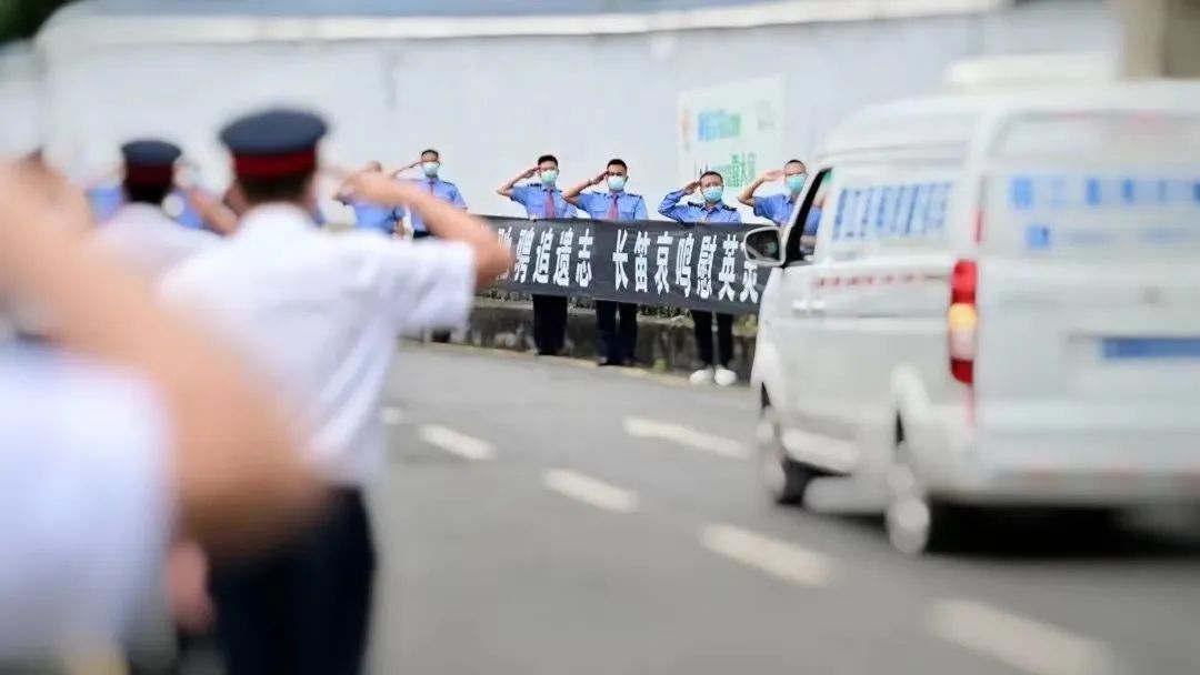 6月5日16时许,载着杨勇遗体的灵车,缓慢地进入殡仪馆。“敬礼!”随着一声令下,早已等候多时的贵阳机务段100多名职工齐举右手,久久地庄重行礼致敬。