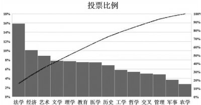 目前,我国高等教育分为哲学、经济学、法学、教育学、文学、历史学、理学、工学、农学、医学、军事学、管理学、艺术学、交叉学科14个学科门类。5月19日起,本报记者在光明日报官方微博发起投票,请大家选出自己最感兴趣的专业。截至记者发稿时,法学排名第一(15.8%),随后是经济学(10.1%)、艺术学(8.9%)、文学(7.8%)、理学(7.7%)、教育学(7.5%)、医学(7.4%)。首期内容,记者将从大家最感兴趣的学科门类开始介绍。