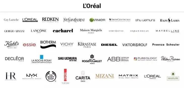 比如赫赫有名的HR郝莲娜、Lancôme兰蔻、YSL圣罗兰美妆、Armani乔治·阿玛尼、Kiehl's科颜氏……都是欧莱雅旗下的品牌。