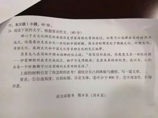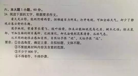 要求:选准角度,确定立意,明确文体,自拟标题;不要套作,不得抄袭;不得泄露个人信息;不少于800字。