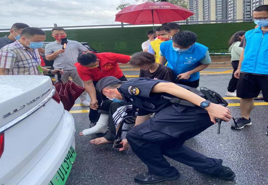今天上午,惠州市仲恺中学考点,有名考生因运动受伤腿部骨折,行动不便,仲恺公安护送考生进入考场,保障考生顺利参考。