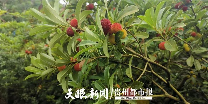 6月6日下午记者来到乌当区阿栗村,这里是全省最大的杨梅基地,在阿者、栗木山、旧寨、高枧等产区,当地大多数杨梅正在由青变红,用方言说就是“打红色”。在旧寨等地势矮一点的村寨,少部分已经变红,但深红色的极少。