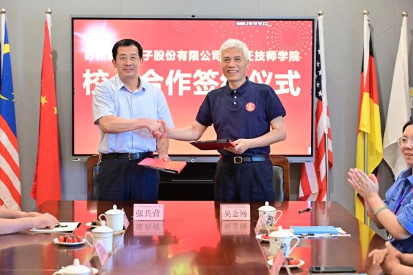 仪式上,双方就二级学院的设立坦诚地交换了意见,并展望了学院与苏州固锝电子有限公司合作的美好前景。