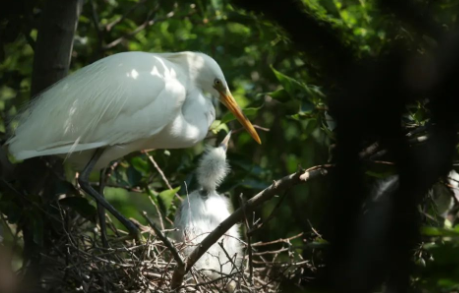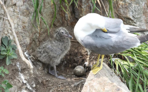 工作人员登上蛇岛,对海鸟的繁殖情况进行查看。目前大部分黑尾鸥幼鸟已经出壳,加上亲鸟,总数量超过1万只。在蛇岛上繁殖的黄嘴白鹭(国家一级保护鸟类)数量近100只,处于孵蛋阶段,已经有幼鸟出壳,半个月后,孵化期将结束。