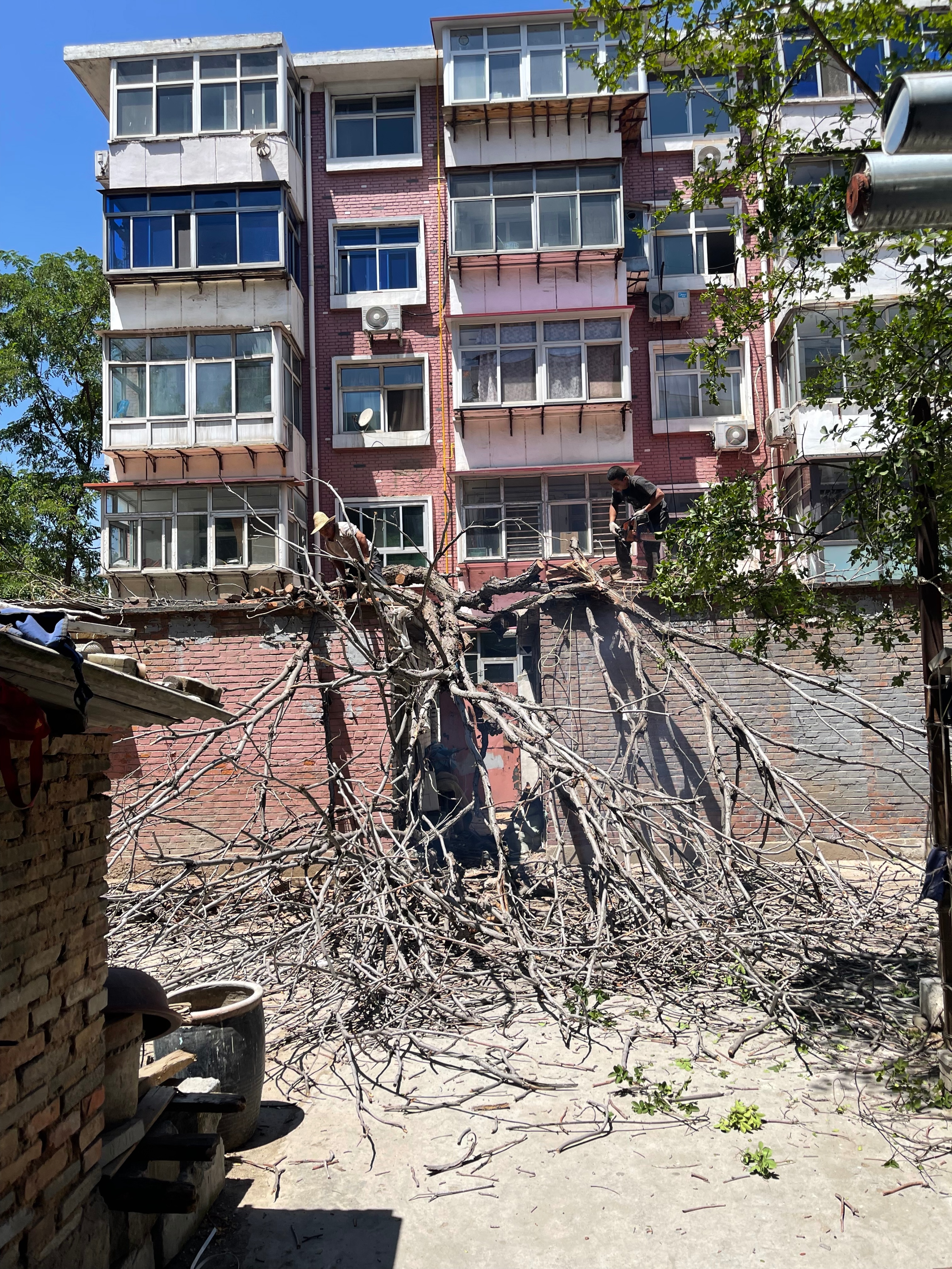 雷先生称,他父母住在高柱小区63栋5单元,这棵香椿树是30年前父母种在楼前院子里的,已经枯死近两年。“直径有三四十厘米左右,有四五层楼高。”雷先生称,他知道未经园林部门审批,即使是自己种的树木也不能私自砍伐。为此,他多次找到物业和居委会反映情况,都未能给处理。