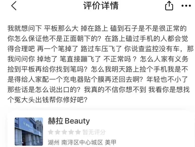 他把事情的经过原原本本发到网络上,倾诉自己的遭遇和委屈,看了帖子的网友跟着气不打一出来,纷纷跑到大众点评给女失主的店铺打低分。