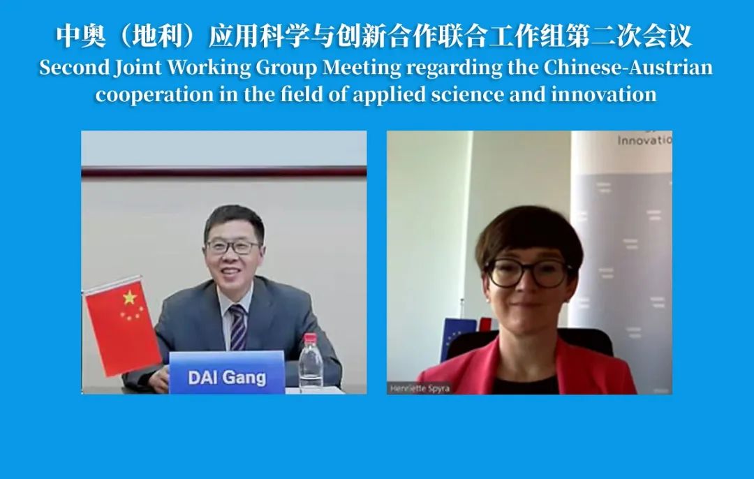 2022年6月7日,中国科学技术部与奥地利联邦气候保护、环境、能源、交通、创新技术部(简称联邦创新技术部)以视频形式成功举行中奥应用科学与创新合作联合工作组第二次会议。科技部国际合作司司长戴钢与奥联邦创新技术部创新技术司司长亨丽埃特·斯派拉(Henriette SPYRA)率团出席。