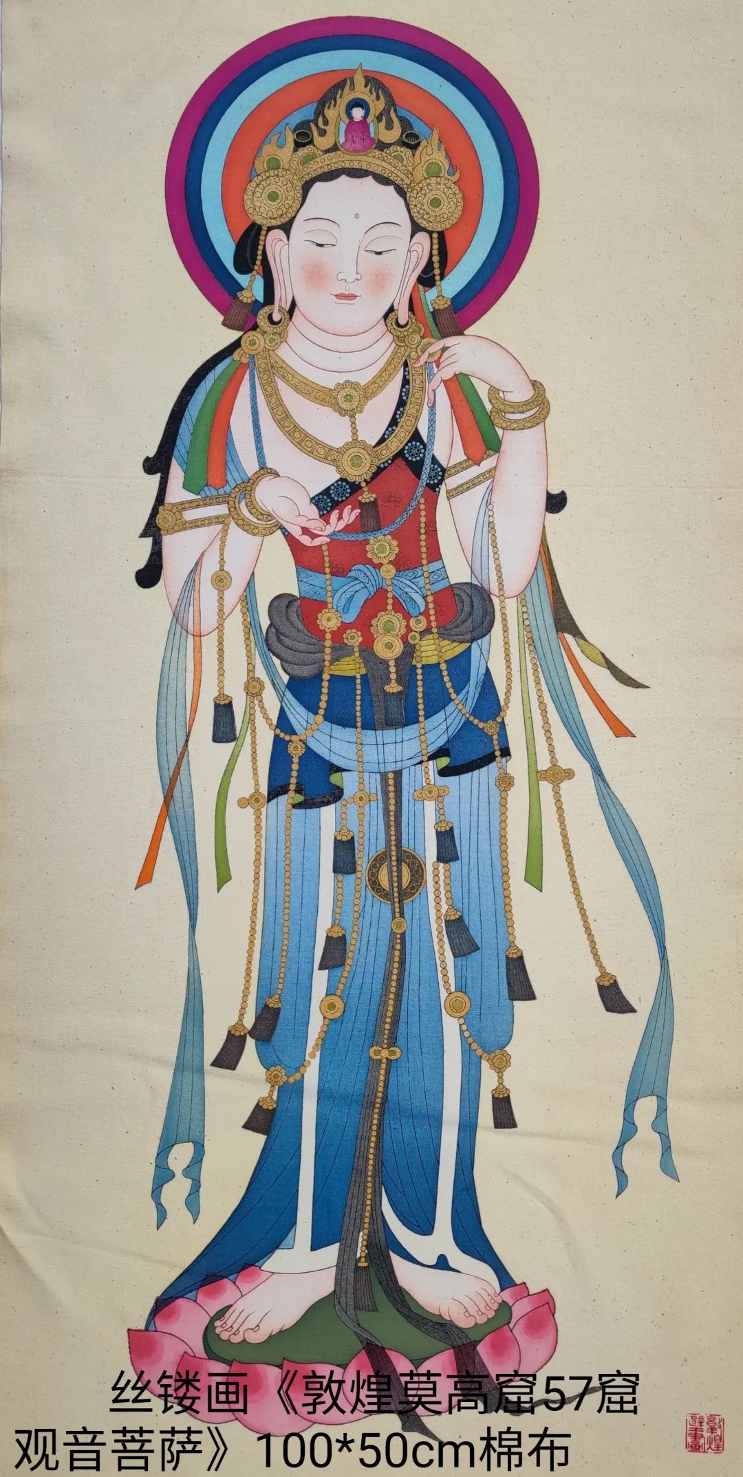 丝镂画《敦煌莫高窟57窟观音菩萨》
