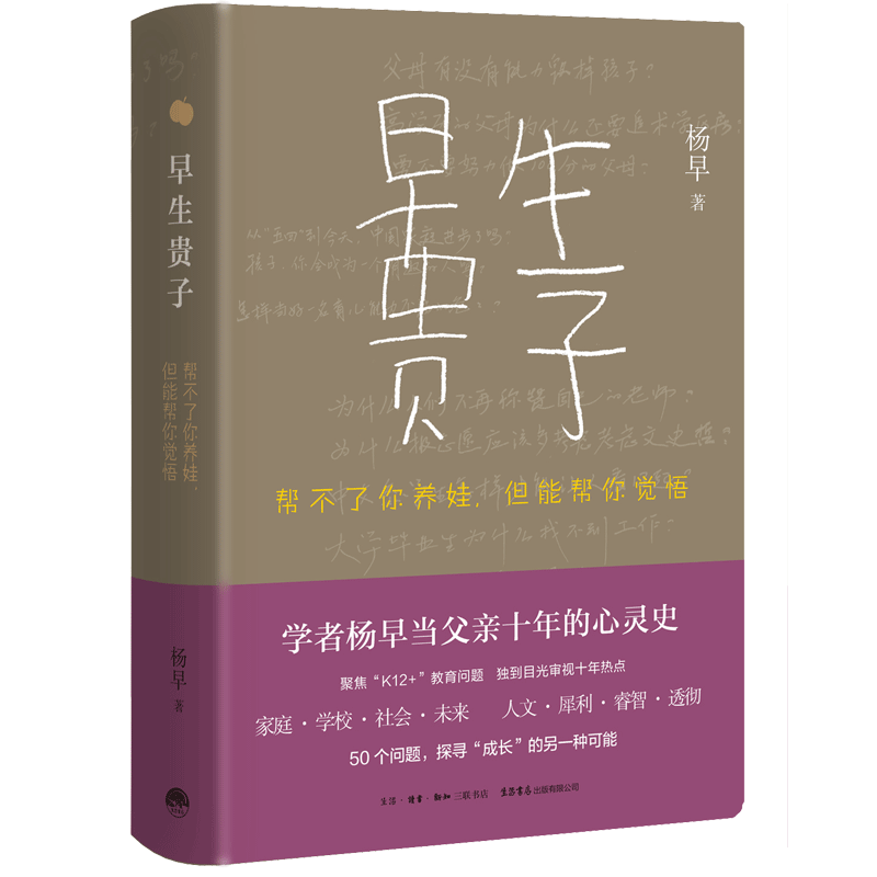 《早生贵子》是学者杨早当父亲十年的心灵史,汇集了作者近十年来对教育问题的50项思考,内容辐射家庭、学校、社会、未来,质疑与反思精神贯穿始终。