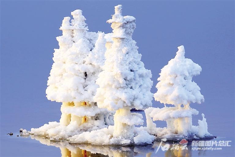 奇特的“盐花”,形似松树一般,直立在盐湖上。谢军 摄