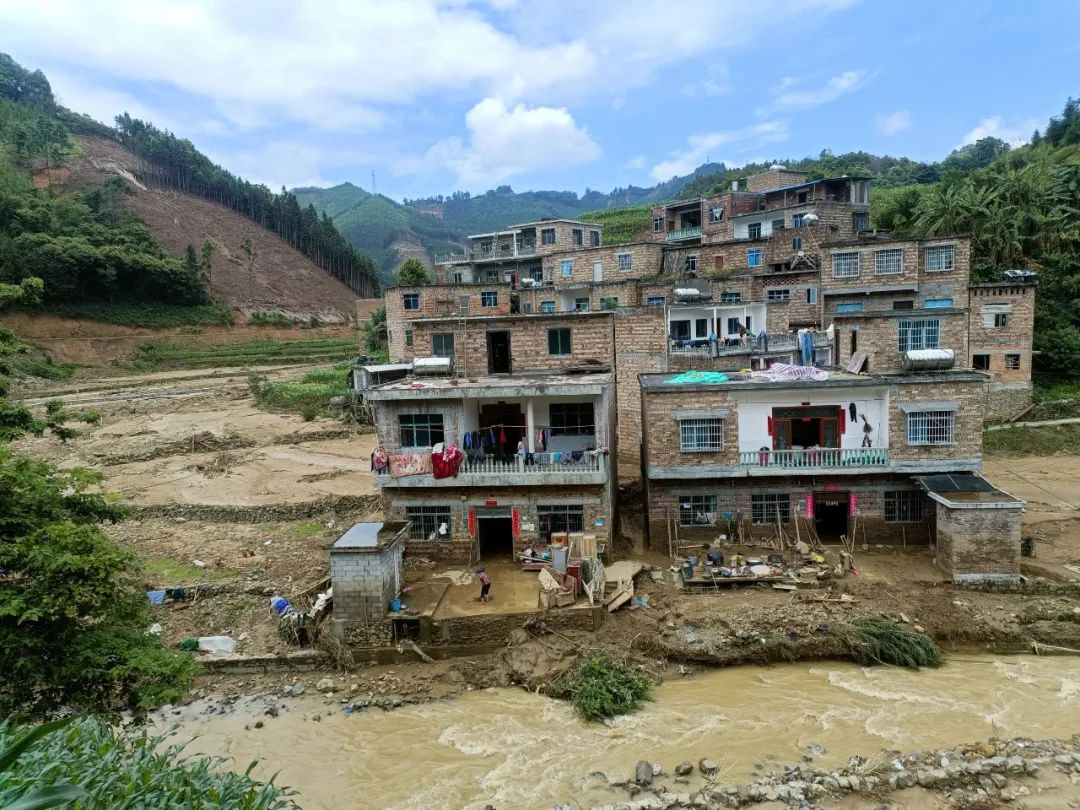 放眼望去,灾区现场一片狼藉,河道桥梁被严重冲毁、农田秧苗被杂物泥沙覆盖、房屋浸泡在淤泥之中。